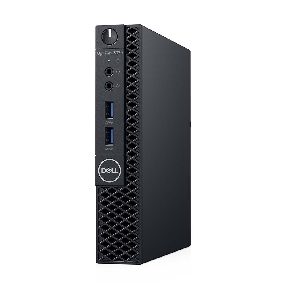 DELL OptiPlex 3070. Frequenza del processore: 3,1 GHz, Famiglia processore: Intel® Core™ i3, Modello del processore: i3-8100T. RAM installata: 8 GB, Tipo di RAM: DDR4-SDRAM. Capacità totale di archiviazione: 256 GB, Supporto di memoria: SSD. Modello scheda grafica integrata: Intel® UHD Graphics 630. Sistema operativo incluso: Windows 10 Pro, Architettura sistema operativo: 64-bit. Alimentazione: 65 W. Tipo di case: MFF. Tipo di prodotto: Mini PC. Peso: 1,18 kg. Colore del prodotto: Nero